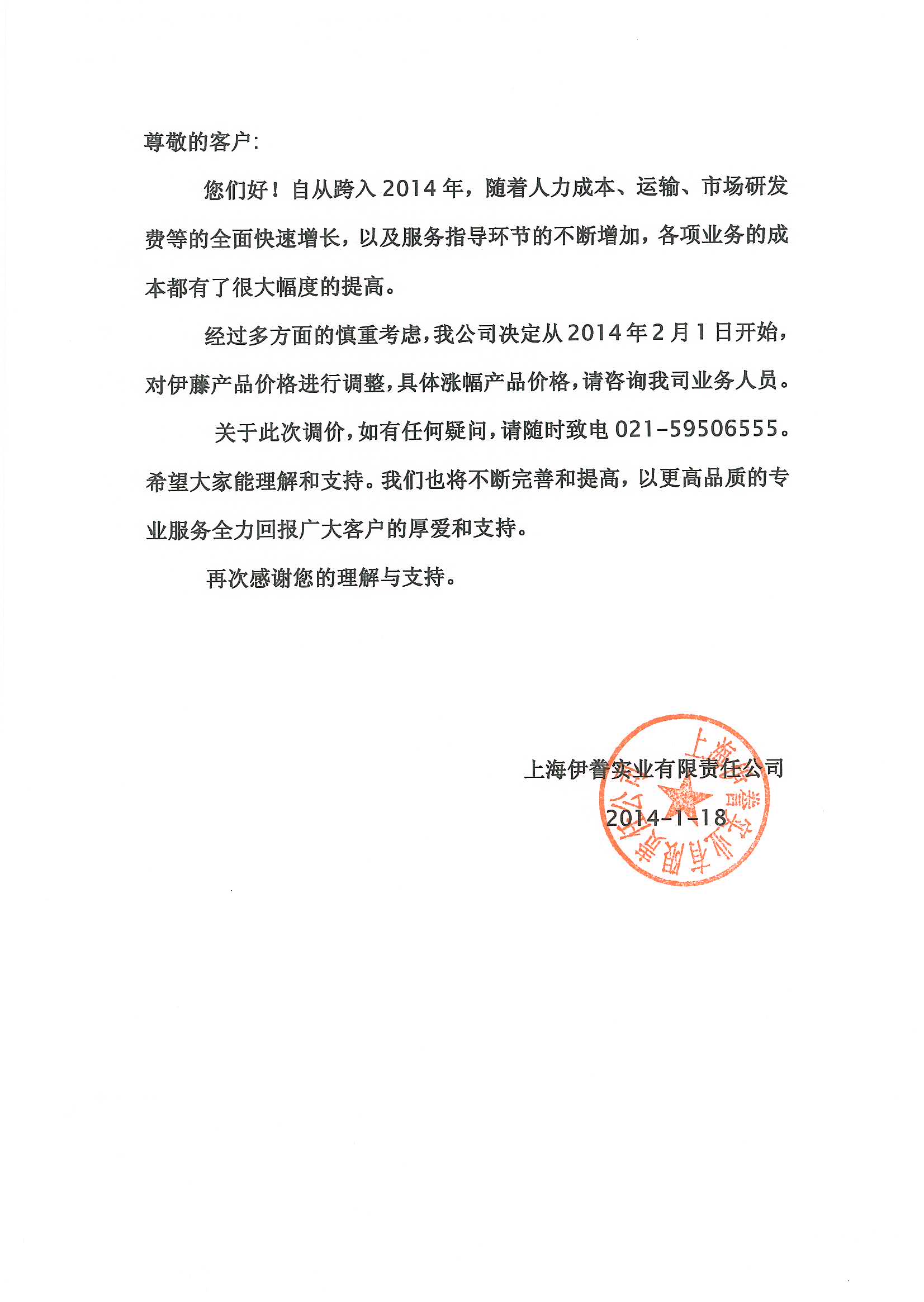 通知:廣大發(fā)電機(jī)用戶伊藤の動(dòng)力品牌發(fā)電機(jī)自上次漲價(jià)后已有10年,這10年期間,我公司并未對(duì)發(fā)電機(jī)的價(jià)格做過(guò)調(diào)整,經(jīng)過(guò)10年的一個(gè)錘煉,伊藤の動(dòng)力品牌在新老用戶的支持下更上一個(gè)階梯,通過(guò)伊藤の動(dòng)力品牌發(fā)電機(jī)管理層一致通過(guò),所有伊藤の動(dòng)力的機(jī)器由2014年2月1日開始漲價(jià),具體漲價(jià)后的價(jià)格詳情請(qǐng)咨詢我公司銷售、客服人員:021-59507993 歡迎您的來(lái)電!也希望確定下來(lái)要購(gòu)買的用戶,在1月份下單,保證您的利益!PS:狼來(lái)了!狼來(lái)了!喊了這么多次的狼來(lái)了,狼真的來(lái)了,對(duì)于伊藤の動(dòng)力品牌這次發(fā)電機(jī)價(jià)格的調(diào)整有任何問(wèn)題,請(qǐng)隨時(shí)來(lái)電咨詢:021-59507990 ! 最終解釋權(quán)歸上海伊謄實(shí)業(yè)有限責(zé)任公司所有!