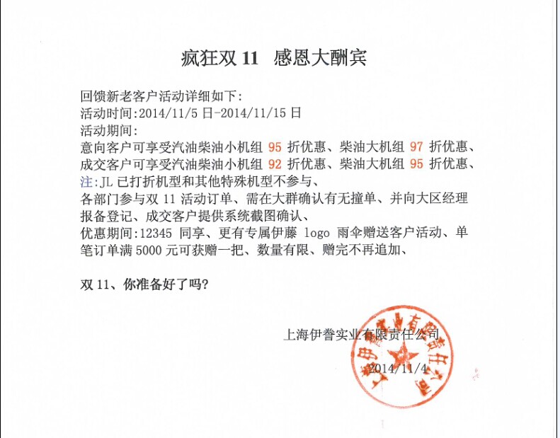 雙 11——伊藤發(fā)電機(jī)特惠活動