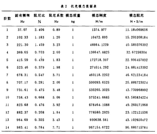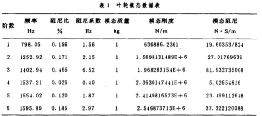 經(jīng) F盯 分析儀進(jìn) 行信號分析 , 得到 葉輪和機(jī) 殼的幅頻特性 曲線 , 再經(jīng)計(jì)算機(jī) 進(jìn)行 曲線擬 合 , 得到葉輪和機(jī)殼的 各階模態(tài)參數(shù) , 如 表 1 和 表 2 所 示.